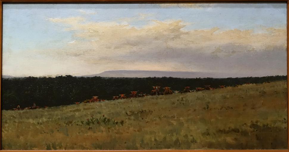 | View Original: | Coming Herd, After a Rain, by Frank Reaugh, c. 1895, oil on canvas - Harry Ransom Center - University of Texas at Austin - DSC08548.jpg (5009x2640) | |||
