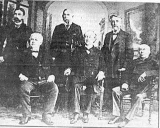 | Keywords: Comisión de fronteras creada por EE.UU. para el Laudo Arbitral de París de 1899.jpg en Members of the Boundary Commission set up by the United States In the back row at left is a young Severo Mallet-Prevost while Justice Brewer sits in front row centre es Los miembros de la Comisión de Fronteras creada por los Estados Unidos En la última fila a la izquierda es un joven Severo Mallet-Prevost mientras que Justice Brewer se sienta en primera fila al centro http //www guyana org/features/shape_guyana html E Pirou 1899 PD-old Guiana Arbitration Tribunal Paris 1899 |