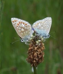 | Keywords: Common Blue Butterflies.JPG en Two Common Blue Butterflies Polyommatus icarus mating on a patch of mixed wildflowers and grassland at the Lion Salt Works in Marston Cheshire United Kingdom own RLamb 2010-06-05 Blue butterflies Polyommatus icarus mating |