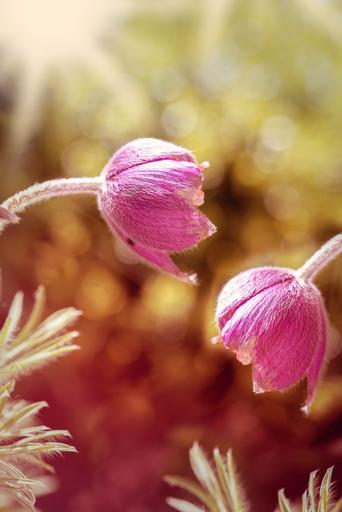 Keywords: common pasque flower pulsatilla vulgaris flower plant spring flower blossom bloom purple petals nature garden close spring ranunculaceae two flowers photography light lighting