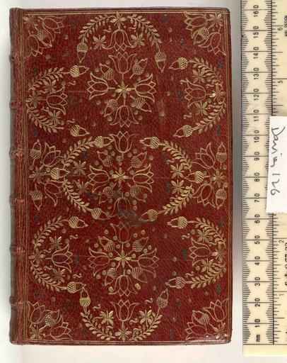 | Keywords: -Common Prayer- - Upper cover (Davis126).jpg Style Acorn All over design Floral; Caption Upper cover; Colour Red; Edge Gilt and gauffered exhibition history Decorative Technique Tooled in gold Tooled in silver; Cover Material Goatskin includes morocco turkey etc Comb-marbled pastedowns With reversed S motifs possibly tooled in silver which has oxidised object history Text 1574; London; Unspecified object type Cc-zero place of creation Binding England place of discovery See M M Foot The Henry Davis Gift vol II London 1983 British Library image http //www bl uk/catalogues/bookbindings/LargeImage aspx RecordId 020-000003410 ImageId ImageId 41310 Copyright BL Common Prayer Uploaded with GWToolset Common Prayer - Upper cover Davis126 http //www webarchive org uk/bldatasets/bindings/5827_4 jpg Bookbinding 17th-century bookbinding British Library Bookbindings |