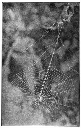 | Keywords: Common Spiders U.S. 397 Araneus marmoreus web.jpg en Web of Epeira insularis with nest above covered with leaves and several threads leading from the nest to the center of the web One-third the real size 1902 The Common Spiders of the United States Ginn Company Boston 1902 James Henry Emerton 1847 “ 1931 other versions PD-old-70-1923 The Common Spiders of the United States Uploaded with UploadWizard Araneus marmoreus | ||||