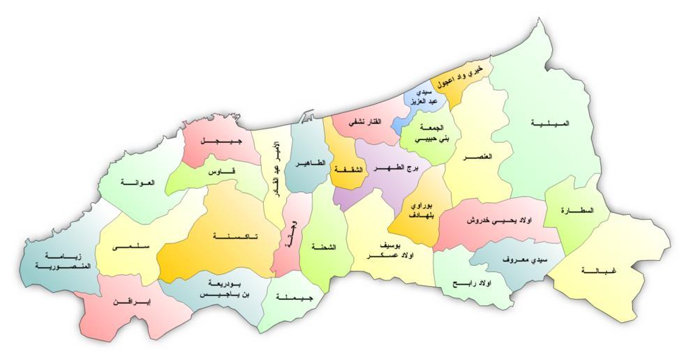 | Keywords: Communes Wilaya Jijel Arabe.png ar خريطة ولاية جيجل البلديات - الجزائر en Map of Jijel province The Municipalities - Algeria fr La carte de la wilaya de Jijel Les Communes - Algérie es Mapa de la provincia de Jijel Los Municipios - Argelia own Malek 2008-12-14 Maps of Jijel Province Maps in Arabic |
