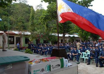 Keywords: Community service project during Balikatan 2009 DVIDS166889.jpg en Cmdr Yin Dang a chaplain speaks to Sailors assigned to the amphibious assault ship USS Essex before a community service project at Barretto National High School During the project Essex Sailors performed repair work played educational games with the children and delivered books donated by the freshmen class at E J King High School at Commander Fleet Activities Sasebo Japan Essex is participating in Balikatan 2009 an annual combined joint-bilateral exercise involving U S military and armed forces of the Philippines personnel as well as subject matter experts from Philippine Civil Defense Agencies 2009-04-18 Gregory Johnson https //www dvidshub net/image/166889 090418-N-+++++-252 2009-04-22 03 24 OLONGAPO CITY PH PD-USGov-Military-Navy Balikatan 2009 USS Essex LHD-2 Images from DoD uploaded by Fæ