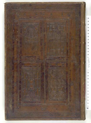 | Keywords: Compendiosa totius Anatomie delineatio, - Lower cover (c43h2).jpg Style Panel design Dated; Caption Lower cover; Colour Brown; Edge Unspecified exhibition history Decorative Technique Panel stamp in blind Tooled in blind; Cover Material Calf This may well be tooled in gold not blind Possibly bound in Saxony or Tubingen Macchi states; A very similar altough not identical panel-stamp example upper cover 1 st top right; lower cover 3 rd bottom left is reproduced in M Von Arnim's Einbandkunst n 46 on Martin Luther Eine einfeltige weise zu beten für einen guten Freund Leipzig Valentin Baptist 1551 An analogous cover bound in Tübingen by the Jakob Andreä Master kept in the Biblioteca Apostolica Vaticana I Schunke Die Einbände der Palatina pl IC no text is reproduced in M von Arnim's Einbandkunst n 70 on Jean Jacques Boissard Emblematum liber Frankfurt M Theodor de Bry 1593 too The layout is analogous but the background is richer in the second panel-stamp kind I Schunke refers in this last case to a Samuel Streler see C 24 a 18 C 65 l 9 successor because of the bindings he produced for the Tübingen theologian Jakob Andreä 1528-1590 object history Text 1553; London; Unspecified object type Cc-zero place of creation Binding Germany place of discovery Unspecified British Library image http //www bl uk/catalogues/bookbindings/LargeImage aspx RecordId 020-000006232 ImageId ImageId 42721 Copyright BL Compendiosa totius Anatomie delineatio Uploaded with GWToolset Compendiosa totius Anatomie delineatio - Lower cover c43h2 http //www webarchive org uk/bldatasets/bindings/7872_4 jpg Bookbinding 16th-century bookbinding |