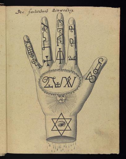 Keywords: public domain collage fodder demonology magic text writing sketch drawing monochrome Public Domain: Compendium rarissimum totius Artis Magicae sistematisatae per celeberrimos Artis hujus Magistros. Anno 1057. Noli me tangere In German and Latin. On white, brown and grey-green paper. The title within an ornamental border in wash, with skulls, skeletons and cross-bones. Illustrated with 31 extraordinary water-colour drawings of demons, and three pages of magical and cabbalistic signs and sigils, etc. At the end the figures are in red, and part of the text is written in white on the grey-green paper. Public Domain: Compendium rarissimum totius Artis Magicae sistematisatae per celeberrimos Artis hujus Magistros. Anno 1057. Noli me tangere In German and Latin. On white, brown and grey-green paper. The title within an ornamental border in wash, with skulls, skeletons and cross-bones. Illustrated with 31 extraordinary water-colour drawings of demons, and three pages of magical and cabbalistic signs and sigils, etc. At the end the figures are in red, and part of the text is written in white on the grey-green paper. |