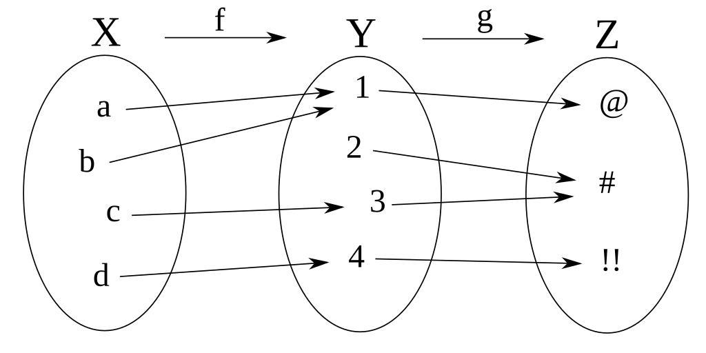 Keywords: Compfun.svg The figure of a composite function Own 2007-10-31 Tlep composition mappings Arrow diagrams of mappings not injective and not surjective