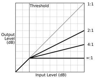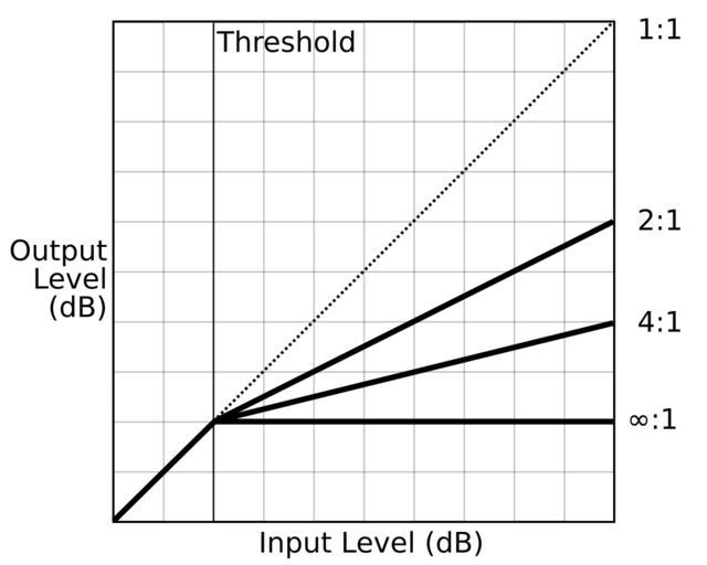 Keywords: Compression ratio.svg Graph showing different compression ratios for dynamic range compression Own 2007-09-06 Iain Fergusson Own Work made public domain Compressor audio signal processor Audio