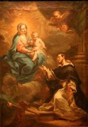 Keywords: Conca-Rosaire.jpg ~ 1740 1750 Oil on canvas cm 52 35 Institution Musée des Beaux-Arts Nimes object history Legs Tur en 1948 credit line accession number IP 1391 own Robert Valette PD-old-100 Photo Uploaded with UploadWizard Musée des Beaux-Arts de Nîmes Sebastiano Conca Saint Dominic receives the Rosary