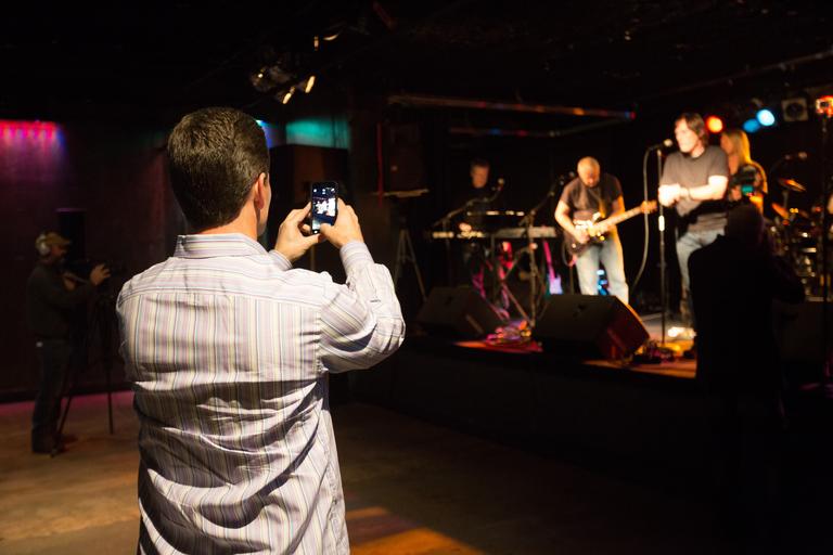 Keywords: concert man picture video cell phone stage performance musical band entertainment music technology live