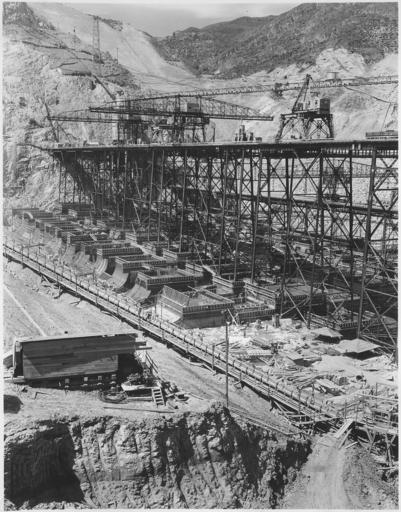 | Keywords: Concrete blocks on the west side showing the curved fillet along the upstream toe of the dam - NARA - 294323.jpg Scope and content Photograph from Volume Two of a series of photo albums documenting the construction of the Grand Coulee Dam and related work on the Columbia Basin Project General notes 294323 Local identifier Department of the Interior Bureau of Reclamation Engineering and Research Center 05/18/1981 - 03/04/1988 NARA's Rocky Mountain Region Denver NRGA Building 48 Denver Federal Center West 6th Avenue and Kipling Street Denver CO 80225-0307 1936-04-30 Record group Record Group 115 Records of the Bureau of Reclamation 1889 - 2008 Record group ARC 444 Photograph albums compiled 1903 - 1972 Series ARC 293611 File unit File unit ARC Variant control numbers NAIL Control Number NRG-115-CONSTPHO85006-COLBASIN21052 Other versions <gallery> File Concrete blocks on the west side showing the curved fillet along the upstream toe of the dam - NARA - 294323 tif tif </gallery> NARA-cooperation PD-USGov Construction of the Grand Coulee Dam |