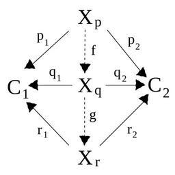 Keywords: Cone category 2obj.svg Cone category over 2 objects no arrows Own 4 11 2007 Tlep Commutative diagrams