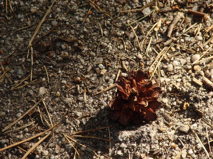 Keywords: cone forest needles stones sticks nature light wood