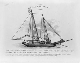 | Keywords: Confederate States privateer Savannah.jpg The Confederate States privateer Savannah letter of marque no 1 captured off Charleston by the U S Brig Perry Lieut Parrott 1861 http //www loc gov/pictures/item/2006686135/ E K Kimmel cph 3c36802 PD-old-100-1923 Ships of the United States in art Navy of the Confederate States of America |