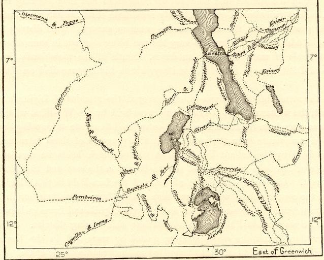 | Keywords: Congo explorations.jpg Congo Basin explorations occurring around 1890 Including the Lualaba River and Luapula River regions; and Lake Bangweulu Lake Mweru and Lake Tanganyika cgi ebay com http //cgi ebay com/ws/eBayISAPI dll ViewItem item 330056221569 ssPageName MERCOSI_VI_ROSI_PR4_PCN_BIX_Stores refitem 330018535498 itemcount 4 refwidgetloc closed_view_item refwidgettype osi_widget 1890 Old map Old image ;NOTES 1890s HISTORICAL MAP CHART Approximate Image Size 4 1/2 X 3 1/2 inches Approximate Overall Size 7 X 10 1/2 inches Scale 1 10 000 000 The Congo is the largest river in Western Central Africa Its overall length of 4 380 km 2 720 mi makes it the second longest in Africa after the Nile If the Chambeshi River is taken as the source the overall length increases to 4 670 km 2900 mi The river and its tributaries flow through the second largest rain forest area in the world The sources of the Congo are in the highlands and mountains of the East Africa Rift as well as Lake Tanganyika and Lake Mweru which feed the Lualaba River which then becomes the Congo below Boyoma Falls The Congo flows generally west from Kisangani just below the falls then gradually bends southwest passing by Mbandaka joining with the Ubangi River and running into the Pool Malebo Stanley Pool Kinshasa formerly LĂ©opoldville and Brazzaville are on opposite sides of the river at the Pool then the river narrows and falls through a number of cataracts in deep canyons collectively known as the Livingstone Falls running by Matadi and Boma and into the sea at the small town of Muanda The Ubangi River also Oubangi is a major tributary of the Congo River in Central Africa It is considered to begin at the junction of the Mbomou and Uele Rivers flows west for about 350 km then bends to the southwest passes through Bangui then flows south for another 500 km to the Congo Together with the Congo River it provides an important transport artery for river boats between Bangui and Brazzaville PD-old Congo Basin Old maps of the Democratic Republic of the Congo Lake Mweru Lake Bangweulu Lake Tanganyika Lualaba River ˘ Maps of Lake Tanganyika |