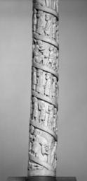 | Keywords: Congolese - Elephant Tusk with Scenes of African life - Walters 71586 - View B.jpg The tusk is carved in high relief with a procession of figures in a rising spiral It is thought to have been carved by the Vili people of Loango for the French traders who dominated the area The scenes which read from the bottom show a war between two African peoples in which the defeated are roped and led away; a sailor woodworking; coconuts being picked; a trader selling gin; prisoners being led off for sale as slaves; a European lighting his cigar; fishermen carrying large fish; a procession of dignitaries; the execution of criminals; goods and ivory being brought for sale; another procession of dignitaries who salute a European in a wicker chair; the preparing of a pig and other food for a banquet; a procession; the arrest of a wrong-doer; a procession; and an execution The top is carved with a gorilla eating a banana and scratching his side The costumes suggest a mid-century date and the Africans in the procession are shown in printed European cotton textiles There are many distinctions in rank among the Africans as indicated by their costume hats and jewelry and by specific symbols for example an umbrella Other similar tusks are known the earliest of which was purchased between 1839 and 1867 by the French admiral Fleuriot de Langle between 1850 1860 ivory cm 108 22 4 10 1 accession number 71 586 10458 Tiffany Company New York date and mode of acquisition unknown Henry Walters Baltimore ca 1910 by purchase Walters Art Museum Henry Walters Acquired by Henry Walters ca 1910 Through African Eyes The European in African Art 1500-Present The Detroit Institute of Arts Detroit; The Nelson-Atkins Museum of Art Kansas City 2010-2011 place of origin Loango Congo Walters Art Museum license Art of the Congo Basin African ivory Collections of the Walters Art Museum Media contributed by the Walters Art Museum needs category review |