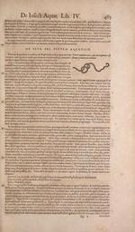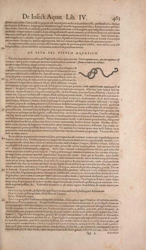 Keywords: Conradi Gesneri medici Tigurini Historiae animalium liber IV (15382947977).jpg DeInreA Aquat Lib IV 4 6 3 <br> bilem iudicarint Genus effe ferpiginis vel impetiginis audio in latetibus colli profutidiof is leuiter <br> «xuIcems tiuentis Regeigituradmittente geracceditingenuaprocidens Rexprecibusquibur- <br> dam didis rotte ceremonijs peradis numum aureum cui ab angelo quo infignitur nomen ma- <br> nu tieftit eoque malum auulfo fi quod impofitum eft medicamento pfohibens deinceps quiCquaim <br> imponi contingit numum xgro donat Tum maium paulatim arefcit curatur Interdicitur au- <br> temfingulis ltacontaclis vtper feptenniummtra feptem miliarianonaccedantad locum vbicunque <br> rex moratur fin minus malumrepetiturum Sed hocetiam fuperftitiofum eife quis non credat <br> Inaquisnonnuliisaudiovermeseirebreuesjcapite proximapartecrairos retro exiles articuli <br> longitudine coiore fubfufco vei incano noxios fi in potu haudantur <br> DE SETA VEL VITVLO AQVATICO <br> Vitulus Aquaticusa noitrisj W n / nefcioquaratioiVe ViwU aquaticiicon qmfetawHtn craf <br> vocatur nifiquod avitulisperstatemmcautioribus nonnun- ftnem exceden wn dsbcbat <br> quam in aqua bibatur magno etiam vitar peric ulo <br> Alij ex rccentioribus Setam aptius vocaruntyfiue afimplici <br> tenuiflimacorporis oblongi figura fiue quod e fetaequina ina- <br> qui s putrefada nafci exiftimetur Seta eft vermis vt quidam di- <br> cunt ferpens a re nomen habens eftenimtenuiffimus inftarfe- <br> i0 te vtfetavelpilus deiubacaudaueequiputetur Albertus fe~ <br> xecubitalislongicudine durus albusrnihildifferens vtraque <br> extremitate quippe cui caput non eft fed ferpit in vtranque partem inde amphishmam aaUaticamfml <br> dtxerts Inaquiscorruptis In aquis ftantibus non multum corruptis Albertus nec tamen fetidis <br> naicitur durus eft adeo vt vix pede conteri poffit fi builiatur non emollitur AIbertus Author de <br> natur rer Caput ei nullum eife videtur ad vtfanque partem natat Forte autem de pilis nafcitur e- <br> quorum hiemminaquaftantepofitbvitam fpiritum accipiunt mouentur ficut multxmesex- <br> pemiumus Albertus Huiusvermisepiloequinoinpaludes veiftagna coiiiecto nafcentis nval26 <br> creditur caput caudam primum crefcere aiunt Infectorumne generis fit dubitari poteft quoniani <br> pelhs vna continua ei eft nec ita vt lubrici mouetur Eadem per totum craffitudine eft dodrante lon- <br> 30 gior albicans Infontebono frigidoolimreperirememini aliasinhortofuperfolioquodam hic <br> longuseratquinqueautfexdigitos craffitudinefets dorfofufco ventrealbicante Caudavndiquiiq- <br> albebat Intncare fe folet mftar Gordij nodi vt duobus aut tribus in locis nodi huiufmodi elegantiffi- <br> medudtiineiuscorporeappareant Huius venenitanta viseiky vtabhominepotuhauftus elaneuere <br> eum tabefcerefaciat doneccumdirocruciatu vitamexuat Authordenat rerum Hauftus ab ho <br> mine crum cruciatu languore vitam aufert aliter autem taclus non noce t A Ibertus Ego etiam vi- <br> tuhs aquaticis potis quofdam mortuos accepi Vir quidam hoc verme epoto mox male habuit circa <br> praecordia tum mulier qusdam centaurij minoris in vino deco um ei propinauit Vomuit ille ac fi~ <br> mulvermemreiecit ' <br> 40 r SiCUi vitulu § a q uaticus n ventrenafcituivperungenduseftventreac ventriculo liquefactis pariter <br> butyro cera oleo Virulusaquaticus inquitBertruciusinMethododecognofcendis morbis vQ- <br> mis paruus eft veluti duos cubitos immh lmosdws tdeftottodig tos longus fubalbo colore habitans <br> inpaludibus aquiscorruptis quemquividet putateire cauds equina-piluim huicnanquefimUis <br> eft Pptus hic bufoms malacomparat Mihi ratio curandi eademprofutura videtur qusaduerlus; <br> tineasaquaticasanobispra fcriptaeft Vituli prsfertimperstatemincautiores hosvermesaliouan- <br> 4odeglutmnt autumnomaxime cumherbis inpotuverorarius Sunt qui ex bruchis quos noftri <br> i/«WT / /appellant oriri eos exiftiment quod mihi verifimile non fit alij ex herbis in aquarualueos <br> vnde pecus potat dependentibus Deyutiti illi circa guttur artcriam hsrent vnde vituii paulatimt <br> contabefcunt fuccurri aiunc quidam vino per nares cornu infufo in quo decoftafmt allia alij reme- <br> dium contralioc malum exploratu eife negant Ololygon animal eftpaluftre fimplex gracile Theon <br> 0 inAratum Etpaulb ante Ololygon auis eft folitudine gaudens vel ie/ov vox videtur corrupta <br> »ov 3 paluftre frigiditate gaudens oblongum indiftincl e cih fi so w terr inteftino fimile fed mul- <br> togracilius qu rendxmantdimqta ttHhs sqmticw anojirts dtcimr 3 ignoratum Ariftoteli qui ololyo-o- <br> navocattantummarisran vocem allicientisadcoitumfo2minam Pluralegesin Ranac inter Qua- <br> drup ouip Reperiuntur inmarivermesaliquihuiufmodi vtnullaaliapia ura quamvnaiineacon- <br> tinuaexprimipoflint c Videinfra elemento v ab initio capitis Rondeletii de verme microrya- <br> chotero <br> Io ni s c vs 1'wim®; ab Ephefijs appellaturaurata authoreEphefioapud Athenxum <br> I o n v s i'wv c pifcis quidam Hefychius Varinus <br> Io p s Vide in Eritimo <br> Is 1 c vm pro pifce Trallianus aliquoties nominat folus opinor apud Grxcos imitatus eumfn- <br> terLatinosPliniusmedicus Sicapillidefluantpropterraritatemmeatuum quoddigeftohumore <br> confumptoque vndenutriebantur excremento contabefcant refrigerantibus aftnngencibus auxi- <br> hjs vti conuenit vidu minime acri Proderunt igitur lactuca- maluse pepones pifces dutiores <br> carnes fuill non pingues maxime bubule pedes bubuli ifycus pectunculi ; buccina Tral- <br> lianus 1 1 Qup in loco Goupylus pro iW inquit emendamus mK ex Athenso Alexandro <br> Aphrodifienfi Athenaeus quidem lib 9 Dipnofoph in ventre porcelli miro artificio parati condi- <br> ti cum alia quxdam tum ificiarepofita fuiffe ait his verbis K«i „¢ » m S xwv «V htTrl» ««TOxwfd - <br> fA-immm Suv avpvrhaiTlipXvx YnMstfiovQ/xd vdiSSfActiTDV OvA-mccvov xcum otvmv –  ; itUces dvmg o oov» <br> Apicius C lius etiam multa quae ad hanc rem fpedant fcnbit lib 1 deopfonijs condimenr