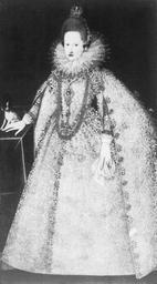 | Keywords: Constance of Austria in Spanish dress.jpg Painting Creator Jakob Troschel Portrait of Queen w Constance of Austria c 1610 Oil on canvas cm 210 137 Institution Germanisches Nationalmuseum Gm 699 The Queen was portraited in Spanish dress saya supposedly a gift from Spain or sewn alla moda after a Spanish court portrait It is confirmed that in 1615 Queen Constance of Austria ordered the Commonwealth's ambassador in Spain to ask for the portraits of the members of the Spanish Royal family childen of her elder sister Margaret of Austria http //www bildindex de/rx/apsisa dll/init sid 1f989aef-5a1c-417e-96c7-1d57e4326382 cnt 80455 www bildindex de Copyright expired PD-Art other versions PD-old-100 DEFAULTSORT 1610c; Constance of Austria by Troschel Images from Bildarchiv Foto Marburg Jakob Troschel 17th-century portrait paintings in the Germanisches Nationalmuseum Garments from the Polish Vasa Collection Constance of Austria 1610s oil on canvas paintings Portrait 1610s portrait paintings 17th-century oil on canvas paintings in Germany 17th-century oil portraits of standing women at full length 17th-century portrait paintings with dogs Black and white reproductions of portrait paintings in color Portrait paintings of standing women with hands resting on tables Portrait paintings of women holding handkerchiefs Portrait paintings of women with dogs Ruffs in art female Spanish saya court dress |