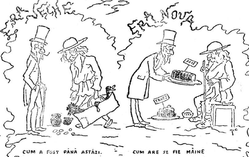 | Keywords: Constantin Jiquidi - Era Nouă, Epoca, 28 nov 1888.JPG en Era Nouă The New Era part of a cartoon published in the Romanian newspaper Epoca Reference is made to the political program of Junimea society a liberal-conservative society which in 1888 formed the Romanian government Although not the Prime Minister Junimea leader Petre P Carp coined the term Era Nouă promising a fair deal to the dissatisfied classes mid-way between sweeping reforms and staunch conservatism Epoca represented the classical Conservative group and was tongue-in-cheek about Carp's ideas In these two panels Jiquidi shows Era Veche The Old Era as a time in which the peasant subservience to the landowner and paying his tribute in foodstuffs In the utopian New Era the landowner bows before the peasant presenting him with servings of pâté and truffles Epoca Suplement Ilustrat 903/1888 available through the Bucharest City Library http //digitool dc bmms ro 8881/R/3YEN91RDQHN2LLAT98CMIIVH6GP3F19S45D2I6YYIM6AN3KQEN-00734 func search DacoRomanica archive Creator Constantin Jiquidi 1888-11-28 Political cartoons by Constantin Jiquidi Epoca Romanian newspaper 1888 in Romania 1888 cartoons 1880s political cartoons Pâté Truffle dishes PD-old-100 |