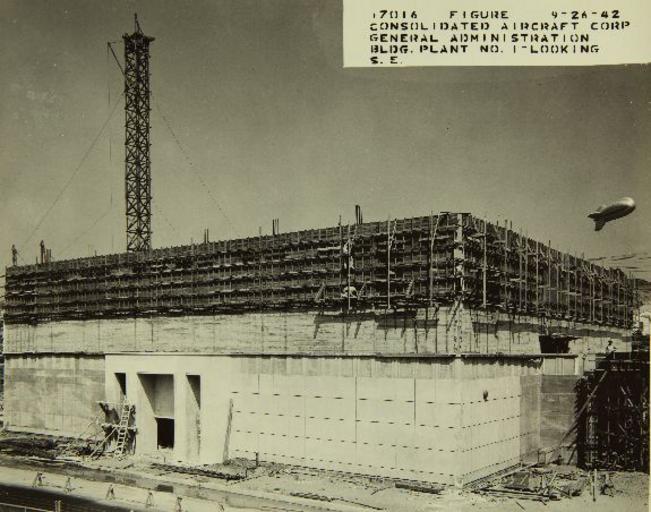 | Keywords: sdasm san diego air and space museum sandiegoairandspacemuseum aviation aeropace factories aeropacefactories san diego sandiego convair consolidated outdoor monochrome Call No.: 10-000072 Notes: Construction of Administration Building Title: Consolidated/Convair Aircraft Factory San Diego Year: 1942 Corp. Name: Convair/Consolidated Description: 8 x 10 Black and White Glossy Print Repository: San Diego Air and Space Museum Archive Call No.: 10-000072 Notes: Construction of Administration Building Title: Consolidated/Convair Aircraft Factory San Diego Year: 1942 Corp. Name: Convair/Consolidated Description: 8 x 10 Black and White Glossy Print Repository: San Diego Air and Space Museum Archive |