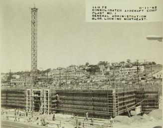 Keywords: sdasm san diego air and space museum sandiegoairandspacemuseum aviation aeropace factories aeropacefactories san diego sandiego convair consolidated monochrome Call No.: 10-000024 Notes: Construction of Administration Building Title: Consolidated/Convair Aircraft Factory San Diego Year: 1942 Corp. Name: Convair/Consolidated Description: 8 x 10 Black and White Glossy Print Repository: San Diego Air and Space Museum Archive Call No.: 10-000024 Notes: Construction of Administration Building Title: Consolidated/Convair Aircraft Factory San Diego Year: 1942 Corp. Name: Convair/Consolidated Description: 8 x 10 Black and White Glossy Print Repository: San Diego Air and Space Museum Archive |