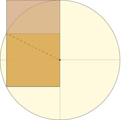 | Keywords: Construction of Golden rectangle.svg Construction of a golden rectangle own 2006-08-13 Jossi Public domain Construction of a golden rectangle Construct a simple square Draw a line from the midpoint of one side of the square to an opposite corner Use that line as the radius to draw an arc that defines the height of the rectangle Use the endpoints of the arc to complete the rectangle The proportions of the resulting rectangle is φ or <math>\varphi \frac 1 2 1 + \sqrt 5 \approx\ 1 618 033 989</math> Golden ratio constructions Golden rectangle |