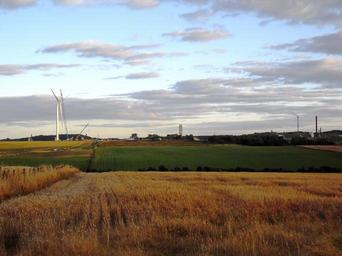 Keywords: construction wind turbine machinery fields countryside grass field green