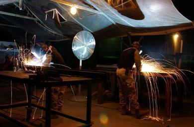 Keywords: construction workers welding welder industry metal military people labor build helmet mask job tasks