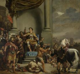 | Keywords: Consul Titus Manlius Torquatus laat zijn zoon onthoofden Rijksmuseum SK-A-613.jpeg accession number SK-A-613 Creator Ferdinand Bol credit line nl Consul Titus Manlius Torquatus laat zijn zoon onthoofden De consul zit op een troon tussen twee zuilen Op de grond het lichaam van de zoon; de beul houdt het afgehakte hoofd omhoog Rechts een soldaat met een paard Op de achtergrond gebouwen van Rome ; Ferdinand Bol 1616 “1680 olieverf op doek ca 1661 “1664 drager Height cm 218 drager Width cm 242 exhibition history Institution Rijksmuseum Technique oil canvas object history Acquisition 1799 object type Potential derivatives exist check http //commons wikimedia org/w/index php search Rijksmuseum+SK-A-613 this search PD-US PD-old-100 Data and photography rights All data and all images made available through the API are either in the public domain or are subject to a CC0 license https //www rijksmuseum nl/en/api/terms-and-conditions-of-use cc-zero place of creation http //www rijksmuseum nl/collectie/SK-A-613 Consul Titus Manlius Torquatus laat zijn zoon onthoofden Q17321526 Uploaded with GWToolset Consul Titus Manlius Torquatus laat zijn zoon onthoofden Rijksmuseum SK-A-613 http //www rijksmuseum nl/media/assets/SK-A-613 Images uploaded by Fæ Images from the Rijksmuseum Paintings by Ferdinand Bol in the Rijksmuseum Amsterdam Paintings by Ferdinand Bol |