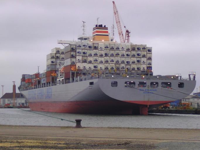 Keywords: Container ship DAL Kalahari (built 2005).jpg en The 2005 built container ship DAL Kalahari is being moored at the Lloyd shipyard in Bremerhaven Germany de Das 2005 in Dienst gestellte Containerschiff DAL Kalahari bei der Lloyd-Werft in Bremerhaven own Tvabutzku1234 2011-07-03 53 33 42 39 N 8 33 15 3 E region DE_heading NNE Cc-zero Container ships in Bremerhaven DAL Kalahari ship 2005 |