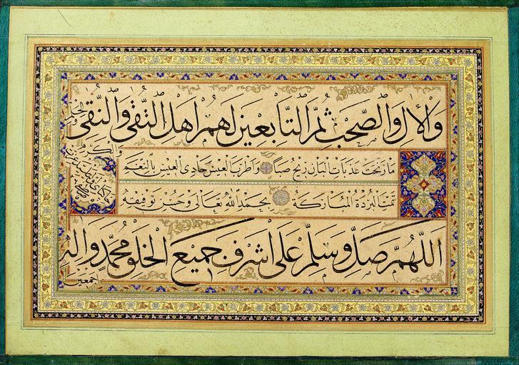 | Keywords: Containing Kadıasker Mustafa İzzet Efendi's calligraphies - Murakka (calligraphic album) - Google Art Project.jpg 1801 Containing None 598782 Kadıasker Mustafa İzzet Efendi's calligraphies 1801 /collection/sakp-sabanc-museum/artwork/murakka-calligraphic-album-containing-kadasker-mustafa-izzet-efendis-calligraphies/592854/ Containing Kadıasker Mustafa İzzet Efendi's calligraphies /artist/kadasker-mustafa-izzet-efendi/4131413/ 4131413 /collection/sakp-sabanc-museum/ Sakıp Sabancı Museum 479109 http //muze sabanciuniv edu/ 12/28/2011 6 21 33 PM /collection/sakp-sabanc-museum/artwork/murakka-calligraphic-album-containing-kadasker-mustafa-izzet-efendis-calligraphies/592854/ 1849 1849 188 592854 False 1849 3/24/2012 7 08 12 AM 120-0164-KMI Sakıp Sabancı Museum Ink colours and gold on paper pasted on cardboard 1840 1850 w263 x h188 mm 1849 False 1 41828254847645 Sakıp Sabancı Museum Object murakka-calligraphic-album-containing-kadasker-mustafa-izzet-efendis-calligraphies Murakka calligraphic album m 263 special url_id igExu61H3Otb0A PD-old-70 Google Art Project works by Kadıasker Mustafa İzzet Efendi Islamic calligraphy Kazasker Mustafa Izzet Efendi |