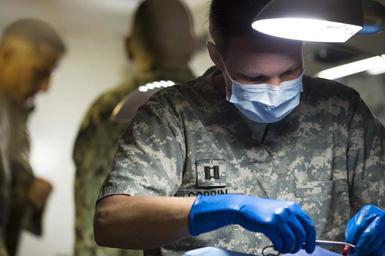 Keywords: Continuing Promise 2015 150530-N-PD309-081.jpg en Army Capt Emily Corbin a native of Boulder Junction Wis and a veterinarian assigned to Public Health Command District Fort Meade Md performs surgery on an animal at a mobile veterinary site established during Continuing Promise 2015 Continuing Promise is a U S Southern Command-sponsored and U S Naval Forces Southern Command/U S 4th Fleet-conducted deployment to conduct civil-military operations including humanitarian-civil assistance subject matter expert exchanges medical dental veterinary and engineering support and disaster response to partner nations and to show U S support and commitment to Central and South America and the Caribbean U S Navy photo by Mass Communication Specialist Seaman Deven Leigh Ellis/Released <br>Unit U S Naval Forces Southern Command U S Fourth Fleet 2015-05-30 Petty Officer 3rd Class Deven Ellis https //www dvidshub net/image/1967495/continuing-promise-2015 150530-N-PD309-081 2015-06-01 08 31 COLON PA PD-USGov-Military-Navy Fort Meade Images from DoD uploaded by Fæ |