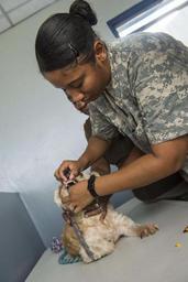 Keywords: Continuing Promise 2015 150601-N-NK134-032.jpg en 150601-N-NK134-032 COLÓN Panama - Army Sgt Janina Alaniz a native of North Bergen N J and a veterinary technician assigned to Public Health Command District Fort Hood Texas performs an exam on a dog at a veterinarian site established at Roberto Mariano Bula Stadium in support of Continuing Promise 2015 Continuing Promise is a U S Southern Command-sponsored and U S Naval Forces Southern Command/U S 4th Fleet-conducted deployment to conduct civil-military operations including humanitarian-civil assistance subject matter expert exchanges medical dental veterinary and engineering support and disaster response to partner nations and to show U S support and commitment to Central and South America and the Caribbean 2015-06-01 June 1 2015 https //www dvidshub net/image/1971817 150601-N-NK134-032 2015-06-03 08 05 COLON PA PD-USGov-Military-Navy Fort Hood Texas Images from DoD uploaded by Fæ Continuing Promise 2015 |