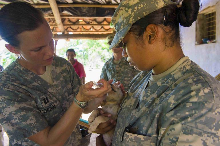 Keywords: Continuing Promise 2015 150620-N-YM856-248.jpg en 150620-N-YM856-248 ACAJUTLA El Salvador Army Capt Emily Corbin left a native of Boulder Junction Wis and veterinarian assigned to Public Health Command District Fort Meade Md and Army Sgt Janina Alaniz a native of North Bergen N J and veterinary technician assigned to Public Health Command District Fort Hood Texas vaccinate a dog at a local farm during a veterinary subject matter expert exchange in support of Continuing Promise 2015 Continuing Promise is a U S Southern Command-sponsored and U S Naval Forces Southern Command/U S 4th Fleet-conducted deployment to conduct civil-military operations including humanitarian-civil assistance subject matter expert exchanges medical dental veterinary and engineering support and disaster response to partner nations and to show U S support and commitment to Central and South America and the Caribbean 2015-06-20 June 20 2015 https //www dvidshub net/image/2020166 150620-N-YM856-248 2015-06-22 08 07 ACAJUTLA SV PD-USGov-Military-Navy Fort Hood Texas Fort Meade Images from DoD uploaded by Fæ Continuing Promise 2015 |
