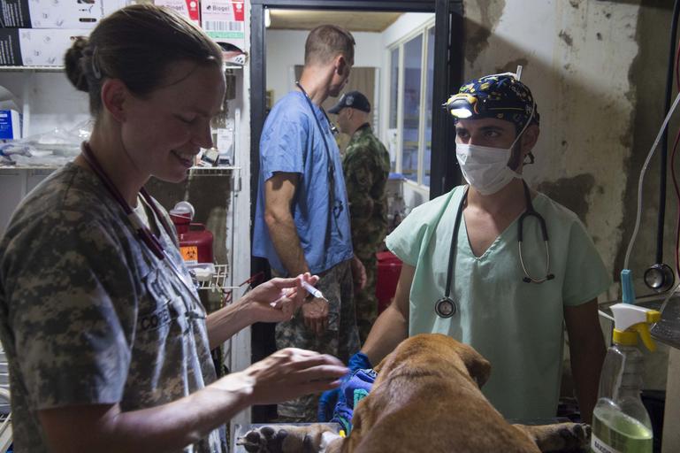 | Keywords: Continuing Promise 2015 150716-N-PD309-063.jpg en 150716-N-PD309-063 BUENAVENTURA Colombia July 16 2015 Army Capt Emily Corbin left a native of Boulder Junction Wis and a veterinarian assigned to Public Health Command District Fort Meade Md and a local Colombian veterinarian perform surgery on a dog at a veterinarian site established at Eufermeria Canina Del Grupo Antiexplosivos Urbano during Continuing Promise 2015 Continuing Promise is a U S Southern Command-sponsored and U S Naval Forces Southern Command/U S 4th Fleet-conducted deployment to conduct civil-military operations including humanitarian-civil assistance subject matter expert exchanges medical dental veterinary and engineering support and disaster response to partner nations and to show U S support and commitment to Central and South America and the Caribbean U S Navy photo by Mass Communication Specialist 3rd Class Deven Leigh Ellis/Released <br>Unit U S Naval Forces Southern Command U S Fourth Fleet 2015-07-16 Petty Officer 3rd Class Deven Ellis https //www dvidshub net/image/2076101/continuing-promise-2015 150716-N-PD309-063 2015-07-20 09 24 BUENAVENTURA CO PD-USGov-Military-Navy Fort Meade Images from DoD uploaded by Fæ |
