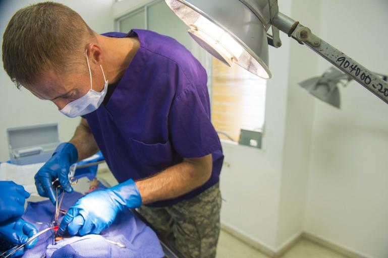 Keywords: Continuing Promise 2015 150820-N-YM856-087.jpg en 150820-N-YM856-087 SANTO DOMINGO Dominican Republic Aug 20 2015 Army Maj Jeremiah Nelson a veterinarian assigned to 85th Civil Affairs Brigade Fort Hood Texas performs surgery on a dog at a veterinary site established at Hospital Clinico Veterinario during Continuing Promise 2015 Continuing Promise is a U S Southern Command-sponsored and U S Naval Forces Southern Command/U S 4th Fleet-conducted deployment to conduct civil-military operations including humanitarian-civil assistance subject matter expert exchanges medical dental veterinary and engineering support and disaster response to partner nations and to show U S support and commitment to Central and South America and the Caribbean U S Navy photo by Mass Communication Specialist 2nd Class Brittney Cannady/Released <br>Unit Expeditionary Combat Camera 2015-08-20 Petty Officer 2nd Class Brittney Cannady https //www dvidshub net/image/2137129/continuing-promise-2015 150820-N-YM856-087 2015-08-22 17 02 SANTO DOMINGO DO PD-USGov-Military-Navy Fort Hood Texas Images from DoD uploaded by Fæ United States Navy images from Santo Domingo Continuing Promise 2015 Santo Domingo Dominican Republic |