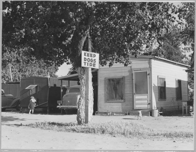 | Keywords: Contra Costa County, California. Entrance to Davis Auto Camp. Family with 10 children live in the tr . . . - NARA - 521779.jpg Scope and content Full caption reads as follows Contra Costa County California Entrance to Davis Auto Camp Family with 10 children live in the trailer on the left General notes 521779 Local identifier 83-G-41535 Department of Agriculture Bureau of Agricultural Economics Division of Economic Information ca 1922 - ca 1953 NARA-Author Lange Dorothea 1895-1965 Photographer 1372774 <br /> Still Picture Records Section Special Media Archives Services Division NWCS-S National Archives at College Park 8601 Adelphi Road College Park MD 20740-6001 1940-05-10 Record group Record Group 83 Records of the Bureau of Agricultural Economics 1876 - 1959 Record group ARC 412 Photographic Prints Documenting Programs and Activities of the Bureau of Agricultural Economics and Predecessor Agencies compiled ca 1922 - ca 1947 documenting the period ca 1911 - ca 1947 Series ARC 521048 File unit File unit ARC Variant control numbers NAIL Control Number NWDNS-83-G-41535 Other versions <gallery> File Contra_Costa_County _California _Entrance_to_Davis_Auto_Camp _Family_with_10_children_live_in_the_tr_ _ _ _-_NARA_-_521779 tif tif File Contra_Costa_County _California _Entrance_to_Davis_Auto_Camp _Family_with_10_children_live_in_the_tr_ _ _ _-_NARA_-_521779 jpg jpg </gallery> NARA-cooperation PD-USGov Dog-related warning signs Dorothea Lange Davis Auto Camp |