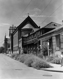 Keywords: Convent of Notre Dame Josephine Street New Orleans 1939.jpg New Orleans 1939 Convent of Notre Dame 835 Josephine Street New Orleans Orleans Parish LA SIDE ELEVATION SOUTHEAST Note Former convent and orphanage would be demolished in 1939; the St Thomas Housing Projects built in part on the location Closer to the camera are dilapidated wooden houses with paper condemnation orders visible View is looking lakewards along Josephine Street; St Mary's Assumption Church can be seen in the next block Historic American Buildings Survey photo by Richard Koch via http //hdl loc gov/loc pnp/hhh la0046/photos 072929p ; TIF cropped contrast slightly adjusted and image converted to jpg before uploading to Wikimedia Commons 1939 Richard Koch PD-USGov St Mary's Assumption Church New Orleans Josephine Street New Orleans Convents in New Orleans Former buildings in New Orleans Notre Dame Convent Former houses in New Orleans Black and white photographs of New Orleans 1939 in New Orleans Built in New Orleans in 1854 Destroyed in the United States in 1939 Former orphanages in the United States |