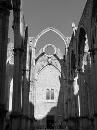 Keywords: convento do carmo former monastery carmelite order gothic destroyed earthquake ruin remains of a wall nave columnar marble museum lisbon portugal black and white