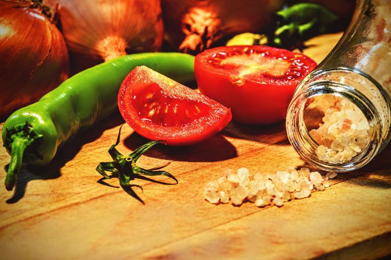 Keywords: cooking tomato pepper cutting salt food ingredient kitchen vegetable onion
