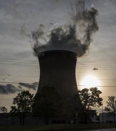 Keywords: cooling tower steam silhouette sunset industry electricity industrial station sky overcast energy plant symbol