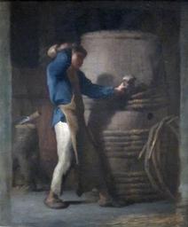 | Keywords: Cooper Tightening Staves on a Barrel by Jean-François Millet, c. 1848-52.JPG en Cooper Tightening Staves on a Barrel oil painting on canvas by Jean-François Millet c 1848-52 private collection own Wmpearl circa 1848 -52 Cc-zero Paintings by Jean-François Millet II Coopers in art |