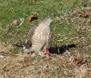 Keywords: CoopersHawk.JPG Adult Cooper's Hawk Accipiter cooperii The photographer took this picture of the hawk in his backyard in West Haven CT We are not sure what the prey was but suspect it was a Mourning Dove as about a dozen or so were in the nearby maple tree at the same time Own 2008-01-31 A Stanley A Stanley Accipiter cooperii eating West Haven Connecticut
