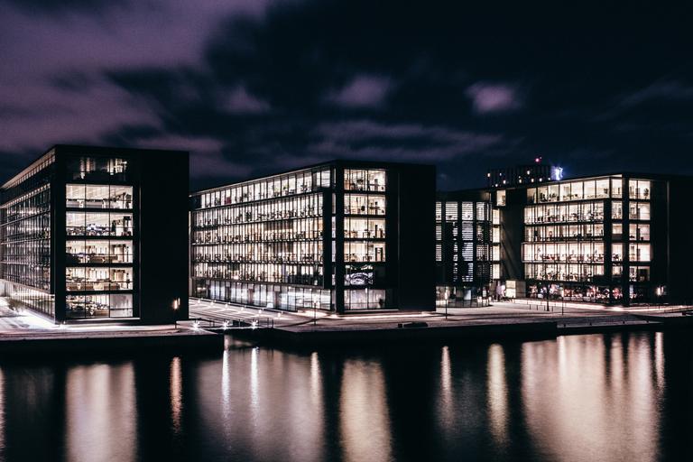 Keywords: copenhagen denmark buildings architecture cityscape night night sky water facade exterior waterfront