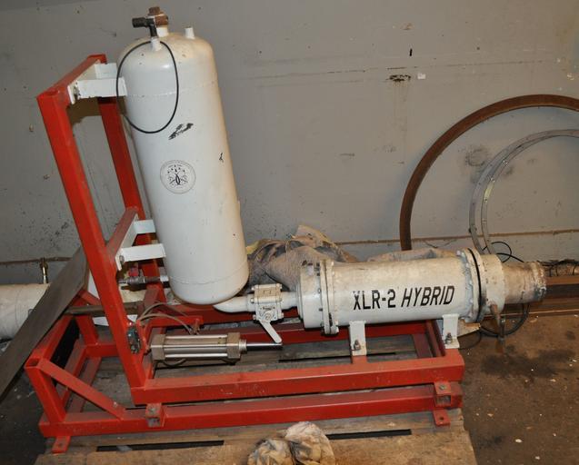 | Keywords: Copenhagen Suborbitals XLR-2.jpg en October 19th 2008 the XLR-2 was fired to evaluate the engine for the HATV Hybrid Atmospheric Test Vehicle rocket It was a success and the prerequisite for a man-rated HEAT Hybrid Exo Atmospheric Transporter own Necessary Evil 2010-02-13 Picture taken at an open house arrangement for engineers February 13th 2010 at the Copenhagen Suborbitals' lair Copenhagen Suborbitals Hybrid rocket engines | ||||