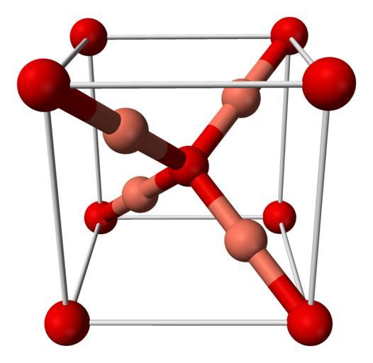 Keywords: Copper(I)-oxide-unit-cell-A-3D-balls.png Ball-and-stick model of one of two possible unit cells for copper I oxide Cu<sub>2</sub>O Own 2007-09-06 Ben Mills Benjah-bmm27 Images by Ben Mills Ball-and-stick models Copper I oxide Crystal structures of oxides Crystal structures of copper salts Unit cells Strukturbericht C3 |