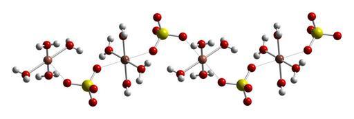 Keywords: Copper(II)-sulfate-pentahydrate-CuOSOCu-chain-from-xtal-2007-CM-3D-balls.png Ball-and-stick diagram of part of the crystal structure of copper II sulfate pentahydrate CuSO<sub>4</sub>·5H<sub>2</sub>O Colour code Copper Cu orange-pink Sulfur S yellow Oxygen O red Hydrogen H white Crystal structure from http //dx doi org/10 2138/am 2007 2229 American Mineralogist 2007 92 532 “545 Image generated in http //www crystalmaker com/ CrystalMaker 8 3 Own 2010-07-26 Ben Mills Benjah-bmm27 Images by Ben Mills Ball-and-stick models Crystal structures of copper II sulfate pentahydrate |