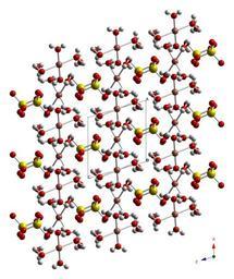 Keywords: Copper(II)-sulfate-pentahydrate-b-axis-xtal-2007-CM-3D-balls.png Ball-and-stick diagram of part of the crystal structure of copper II sulfate pentahydrate CuSO<sub>4</sub>·5H<sub>2</sub>O Viewed down the b axis of the triclinic unit cell Colour code Copper Cu orange-pink Sulfur S yellow Oxygen O red Hydrogen H white Crystal structure from http //dx doi org/10 2138/am 2007 2229 American Mineralogist 2007 92 532 “545 Image generated in http //www crystalmaker com/ CrystalMaker 8 3 Own 2010-07-26 Ben Mills Benjah-bmm27 Images by Ben Mills Ball-and-stick models Crystal structures of copper II sulfate pentahydrate |