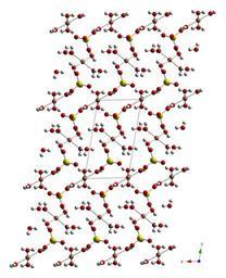 Keywords: Copper(II)-sulfate-pentahydrate-c-axis-xtal-2007-CM-3D-balls.png Ball-and-stick diagram of part of the crystal structure of copper II sulfate pentahydrate CuSO<sub>4</sub>·5H<sub>2</sub>O Viewed down the c axis of the triclinic unit cell Colour code Copper Cu orange-pink Sulfur S yellow Oxygen O red Hydrogen H white Crystal structure from http //dx doi org/10 2138/am 2007 2229 American Mineralogist 2007 92 532 “545 Image generated in http //www crystalmaker com/ CrystalMaker 8 3 Own 2010-07-26 Ben Mills Benjah-bmm27 Images by Ben Mills Ball-and-stick models Crystal structures of copper II sulfate pentahydrate |