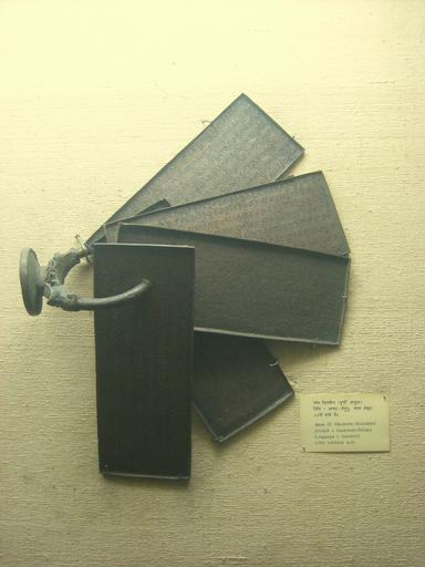Keywords: Copper plates NMND-9.JPG Amma II Eastern Chalukya Sanskrit language written in Canarese-Telugu script 10th century AD Copper plates exhibited in the National Museum New Delhi India own 2010-09-02 Daderot Public domain Copper plates in National Museum New Delhi Telugu inscriptions Art of the Chalukya Empire Andhra Pradesh in the 10th century Eastern Chalukyas |